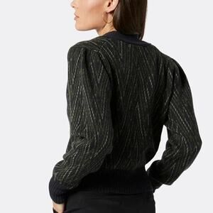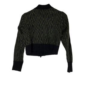 Joie Issil Cardigan Wool Blend Long Sleeve V-Neck Cropped Sweater Black Green S