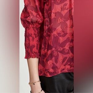 Joie Jamila Red Punk Silk Blouse Top Hibiscus Semi Sheer Size Small