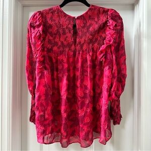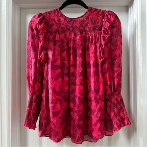 Joie Jamila Red Pink Silk Blouse Top Hibiscus Semi