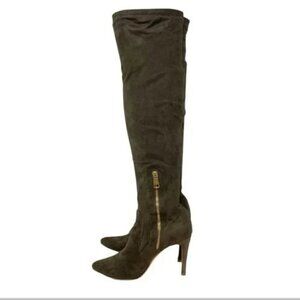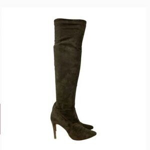 Joie Jemina Over The Knee Taupe High Heel Pointed Toe Sock Boots - Size 6. Faux taupe suede upper. Side zipper for easy on and off.