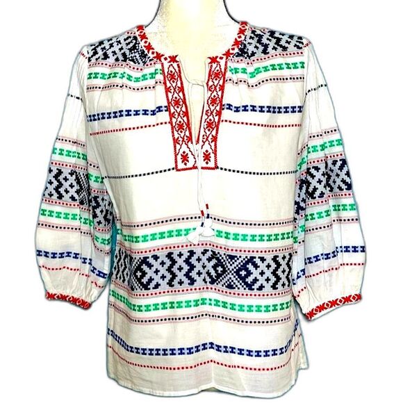 Joie Jenollina Embroidered Cotton Peasant Shirt Top Sz XS/S