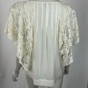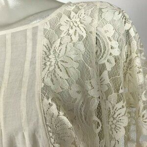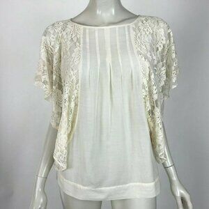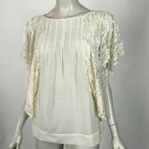 Joie Joyce Top Silk Blend Voile Lace Sleeve Blouse Ivory Scoop Neck Top Women M