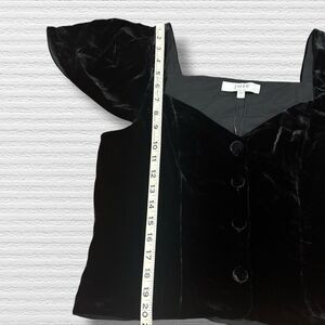 Joie Juniper Black Velvet Button Front Top Size 12 Caviar Flutter Sleeve NWT
