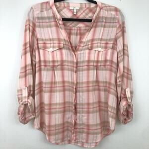 Joie Kalanchoe Pink Plaid Cotton Top Button Front Flowy Pockets Light Good Quality Button Sleeves