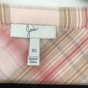 Joie Kalanchoe Pink Plaid Cotton Top Button Front