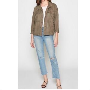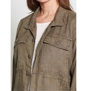 Utilitarian pockets and an oversized silhouette add a menswear feel to this lightweight linen jacket.