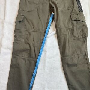 Versatile khaki cargo pants with side detailing. Ideal for everyday wear. Multiple pockets for utility.