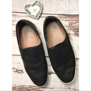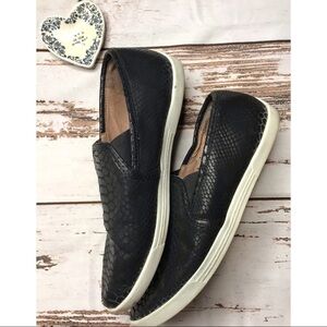 Great snakeskin pattern is feminine and daring. Low profile slip on sneakers in great used condition.