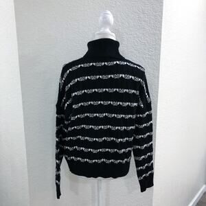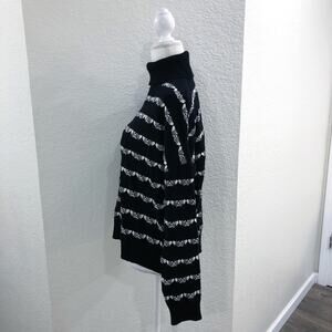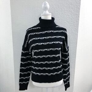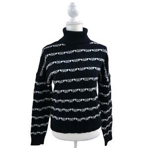 Joie Knit Black and White Scallop Striped Turtleneck Sweater