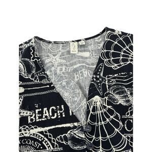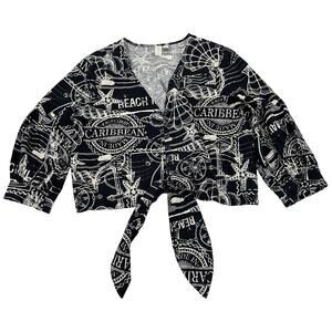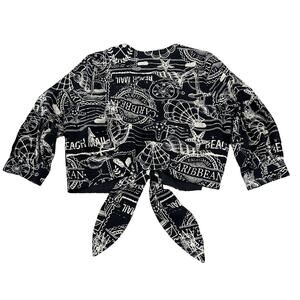 Joie Knotted Crop Top Sz XL Blue Caribean Tropical Print 3/4 Sleeve Linen Blend