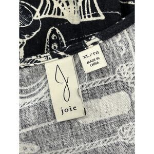 Joie Knotted Crop Top, size XL, featuring a blue Caribbean tropical print and stylish 3/4 sleeves. Crafted from a comfortable linen blend, this top is perfect for adding a pop of color to your wardrobe. It is pre-owned but in excellent cosmetic condition, ready for its next adventure.