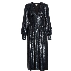 Joie Kyria B Caviar Long Raglan Sleeve Sequins Midi Dress Black Size 4 NWT $598.