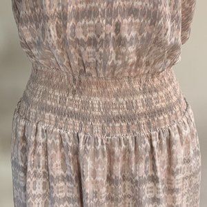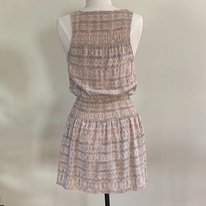 Joie Lawska smocked-waist silk dress in blush, cream, and dove grey soft snakeskin-like print in size small. Super flattering fit highlights the waistline and skims over the hips. Excellent condition, please see photos.
