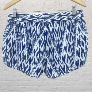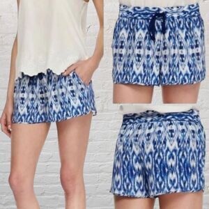 Joie Layana Silk Shorts Size L Blue White Ikat Print Drawstring Pockets EUC