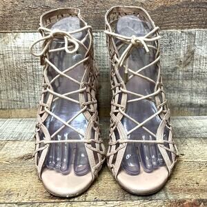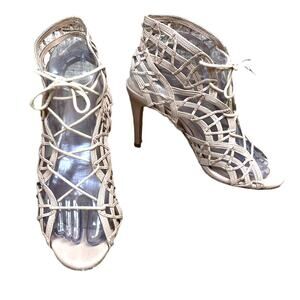 Joie Leah Lace Up Caged Sandals Heels Cream Tan Nude Size 37 7