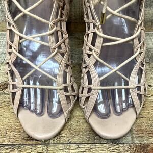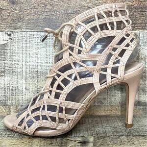 Joie Leah Caged Heels. Size 37. Color ~ nude. Lace up. 4” heel. Gorgeous! Great condition, does have a few nicks on the back of the heel. See pics