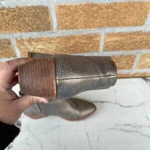 Joie Leather Metallic Gold Wood Stacked Block Heel Point Toe Ankle Boots Sz 37.5