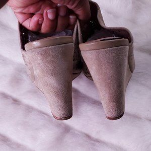 Joie Leather Wedge Peep Toe Tan Perforated 8.5 - 9