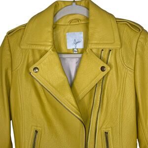 Joie Leolani Lamb Leather Moto Jacket Cornsilk Yellow Asymmetric Front Zip Small