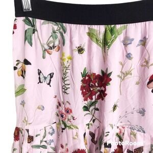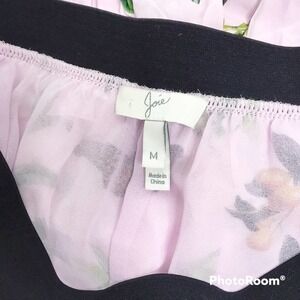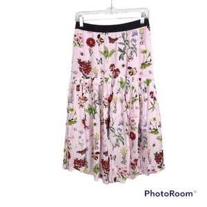 Joie All over floral floral. A light lilac color. Semi tiered almost pleated style. Solid black elastic waistband. Butterflies and bees along with the florals.