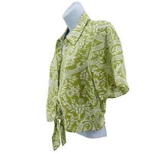 Joie Lime Crop Button-Up Shirt WMNS S Lime Green Cream Paisley Print Knot Front