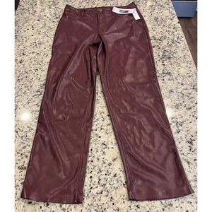 Coating: 100% Polyurethane, Base: 100% Polyester Straight leg style Zip fly with button closure Faux front pockets, functional back pockets Soft interior 11" Rise 29" Inseam Machine wash cold on gentle cycle. Tumble dry low