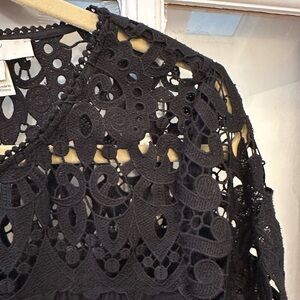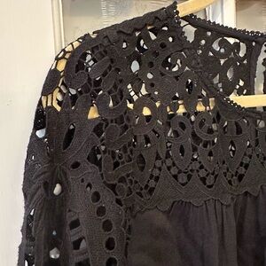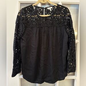 Joie Lindy Top Crochet Lace 3/4 Sleeve Relaxed Baby Doll Blouse Black Size Med M