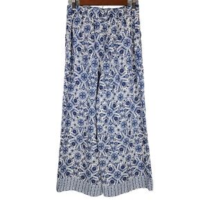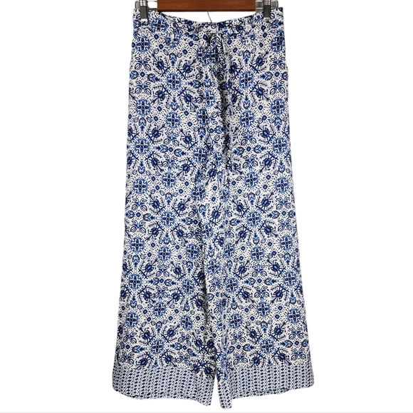Joie Linen Blend Cropped Pants Boho Blue Print 4