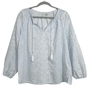 Joie Linen Blend Embroidered Peasant Top Feminine Ditsy Floral Blue Size Medium