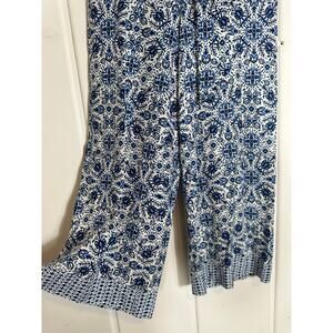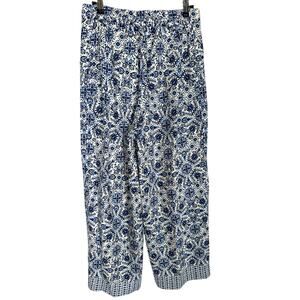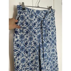 Joie Linen/Rayon Summer Pants Wide-Leg Blue Floral with Pockets