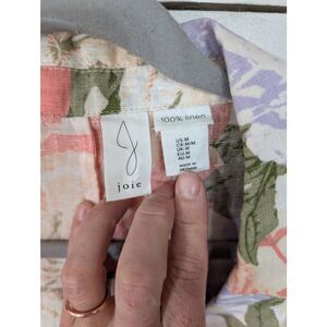 Joie Linen Floral Blazer women's medium longline cream pink leafy coastal