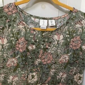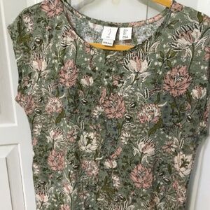 Joie 100% linen blouse with cap sleeves and a pretty floral pattern. Features green and pink hues. Perfect for casual wear.