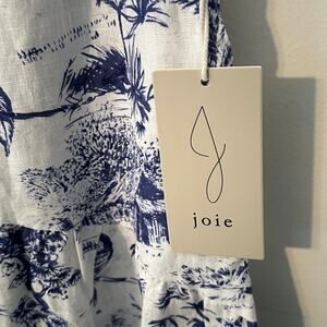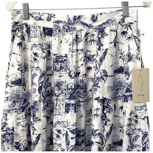 Joie Linen Midi Skirt Womens Medium White Blue Pull On Beachy Tropical Floral
