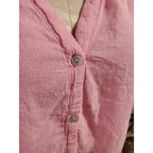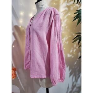 Joie Linen Shell Button Pleated Long Sleeve Blouse Top Womens Size L Pink Hi Low