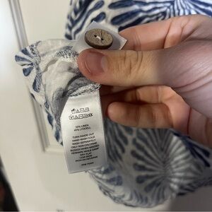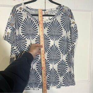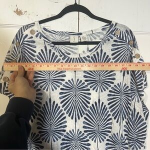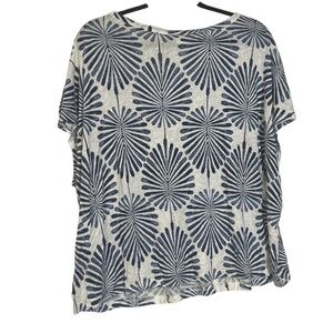 Joie Linen Short Sleeve Top Button Shoulder Blue & White Tropical Size 2X Leaf