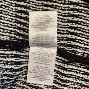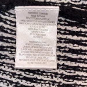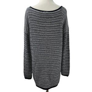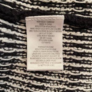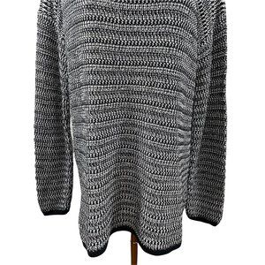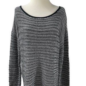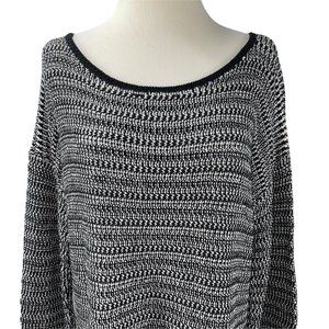 Soft Joie Sweater. Generously sized. Knit is a soft and very stretchy cotton blend. Mixed knit pattern. Hangs straight. Longer length. Dropped dolman long sleeves. Black, white.