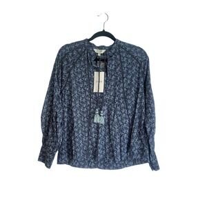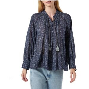 Joie Long Sleeve Dracha Tie Neck Blouse Blue Women's Size XS NWT