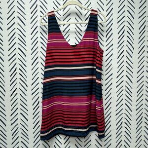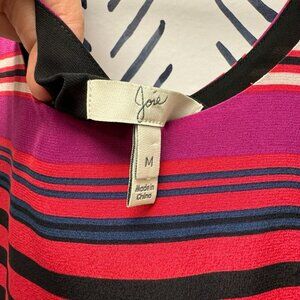 This is a fun striped dress from Joie! It has red, pink, navy, and black stripes and a loose fit. It has a scoop front and a v-shaped back. The fabric content tag has been removed but I think it's silk. Size Medium.
