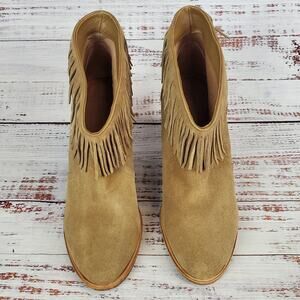 Joie Loren Fringe Booties Boho Tan Suede Leather Slip on Western Boots.