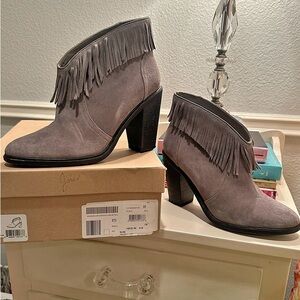 Joie Loren Gray Suede Fringe Ankle High Heel Booties; Size 39