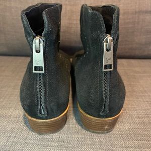 Gently used ankle boots. Suede with cute studded design. No rips or stains, they zip at the back, size 39.5.