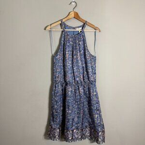 Joie Makana D Silk Floral Mini Dress Women's Medium Hyacinth Blue Metallic Party