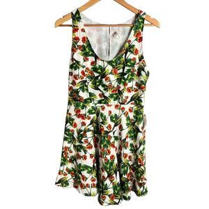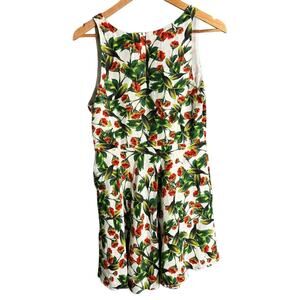 Joie Mare Floral Print Linen Silk Mini Dress White Green Red Size M