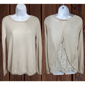 Joie Marianna Pullover Sweater Sz M Cream Split Lace Back Cashmere Wool Blend