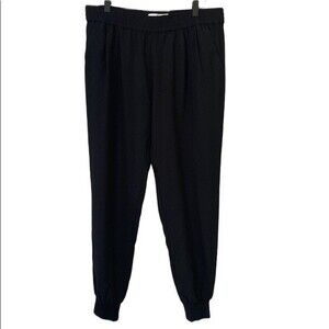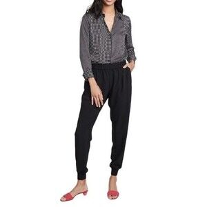 These black joggers are perfect for every day wear with the effortless relaxed crepe style and enhanced by a comfortable elasticized waistband, a tapered silhouette and elasticized soft banded cuffs by Joie.