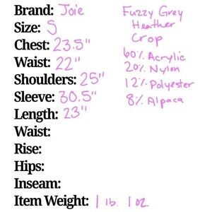 Elevate your sweater game with this Joie Markita pullover, crafted with a fuzzy knit in a beautiful pastel color scheme. The balloon sleeves add a playful touch to the classic crew neck design, while the tight-knit pattern and lightweight feel make it a versatile piece for any occasion. The pullover closure and stretchy fabric ensure a comfortable fit, and the combination of acrylic, nylon, polyester, and alpaca materials make it both soft and durable. Perfect for a casual day out or dressed up for a night on the town, this sweater is a must-have addition to any wardrobe.