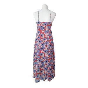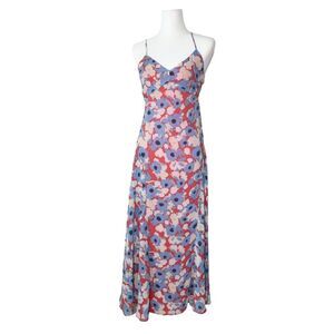 Joie Silk Floral Slip Dress Size 0 Red Blue Maxi Bias Cut Romantic Cottagecore