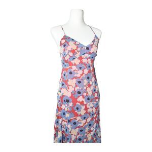 This Joie silk dress blends effortless romance with elevated resort ease. Crafted from 100% silk with a watercolor-style floral print in shades of red, blue, and blush, it features a cowl neckline, adjustable straps, and a fluid bias-cut silhouette that drapes beautifully over the body. A timeless piece for vacations, garden parties, or date nights. Size 0.