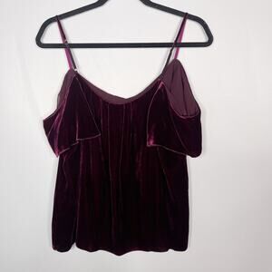 Joie Medium M Red Adorlee Cold Shoulder Velvet Flutter Sleeve Top Short Sleeve