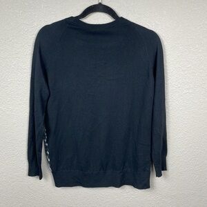 This is a beautiful lightweight sweater made with silk snow leopard print front and black wool cashmere blend sleeves and back.